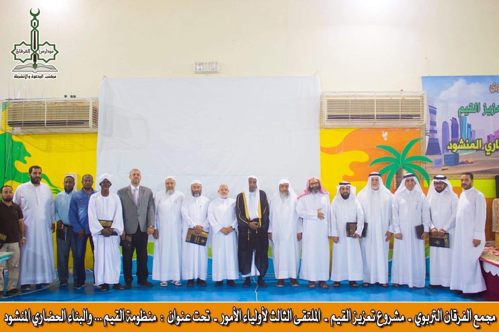 بدأ الملتقى بصلاة المغرب واستقبال أولياء الأمور مع سماع بعض الأناشيد الترحيبية ، بعد ذلك الترحيب بالسادة الحضور من أولياء الأمور والمدرسين والإدارات ثم بدأ مع آيات بينات من كتاب الله عز وجل وتبع ذلك كلمة المشرف العام على مشروع تعزيز القيم ، فضيلة الشيخ / سامح قنديل ، أشار فيها للدور الهام لتواصل جهود الأسرة مع جهود المدرسة حتى تتحقق الإفادة الكاملة ، بعدها عرض فضيلته منظومة القيم ثم عرَّج على الأنشطة المرتبطة ببرنامج القيم من أنشطة صفية ولا صفية ، لإعطاء أولياء الأمور تصورًا عامًا عن المشروع حتى تتواصل الجهود ، ثم كانت كلمة الدكتور / أحمد الفرجابي ، وجَّه الشكر فيها لمجمع الفرقان والقائمين عليه ، والتأكيد على أهمية المنظومة القيمية الفرقانية ، كما أكد فيها على أهمية التواصل بين البيت والمدرسة ، ودور كل من الأسرة والمعلم في غرس القيم ، وكيفية التغلب على المعوقات في طريق غرس القيم ، وأهمية تكوين المفاهيم وتصحيحها لدى أبنائنا ، ثم كانت كلمة المستشار ( عادل حسن العبيدلي) نائبًا عن أولياء الأمور تعبيرًا عمليًا عن التوصل مع أولياء الأمور ، تبع ذلك عرض من أحد منسقي القيم لأبرز الاقتراحات التي تم اقتراحها في الملتقى الثاني والنسبة الإيجابية لتحققها والتفاعل معها ، جاء ختامًا للملتقى تكريم المشاركين بدرع خاصٍ بالملتقى.