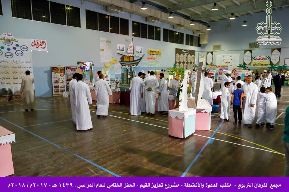 لعبت مدارس الفرقان دورًا رائدًا في توظيف المعارض الفنية لخدمة القيم الإسلامية ، حيث أقامت معرضًا يضم ثلاث أجنحة ( قيمة محبة النبي ﷺ ـ تحمل المسؤولية ـ قيمة التخطيط ) ، وذلك لما للمعارض من دور فعال في تنشيط الذاكرة الجمالية ، وتحفيز النواحي الإبداعية المتعددة ، وتعزيز الخلفية الثقافية ، وترسيخ المعاني الوجدانية ، مما يعمل على تنمية خبرات الطلاب والتعرف على طرق التعبير المختلفة ، فتتكامل شخصياتهم وتنتظم سلوكياتهم .