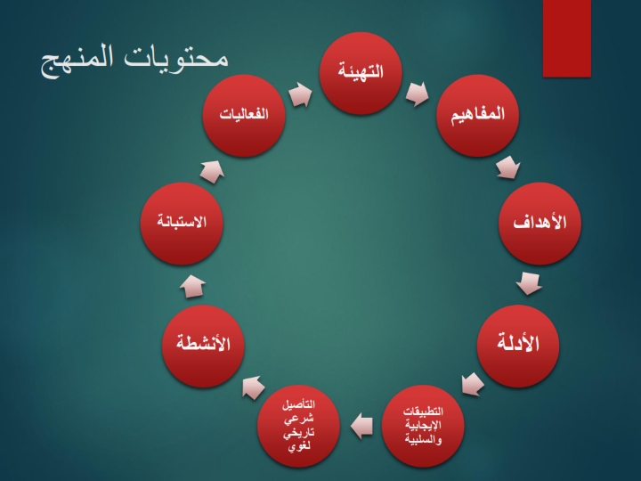 •خدمة الموضوع بعدد وفير من النصوص ، من الكتاب ، والسنة ، والآثار الواردة عن السلف ، وعيون الأشعار المروية ، يختار منها المعلمون ما يوظفونه في التخطيط للموقف التعليمي والتعلمي .