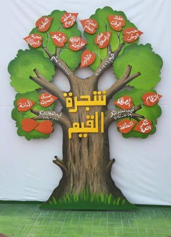 اتفق القائمون على مشروع القيم إدارة ومشرفين على تصميم شجرة تمثل منهج القيم الذي ينمو ويترعرع وتظهر على فروعها الثمار اليانعة أي القيم التي يتدارسها ويتشربها أبناؤنا وفق المنهج الموضوع بعناية والمخطط له بدراية ، لتستعرض عيون الجميع القيم تظهر إحداها تلو الاخرى كثمار يانعة على شجرة القيم