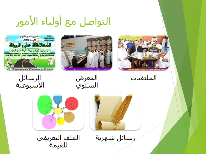 فيي إطار منظومة القيم الشاملة واهتماما بأولياء الأمور كعنصر أساسي وفعال في منظومة القيم و تفعيلا للشراكة الاسرية وتواصلا مع أولياء الأمور لغرس قيم منهجنا المبارك في نفوس أبنائنا الطلاب أقيمت عدة ملتقيات وندوات تناقش أهم مواضيع الساعة التي تهم أولياء الأمور وأبنائهم وتعالج مشاكل تربوية ظاهرة للعيان