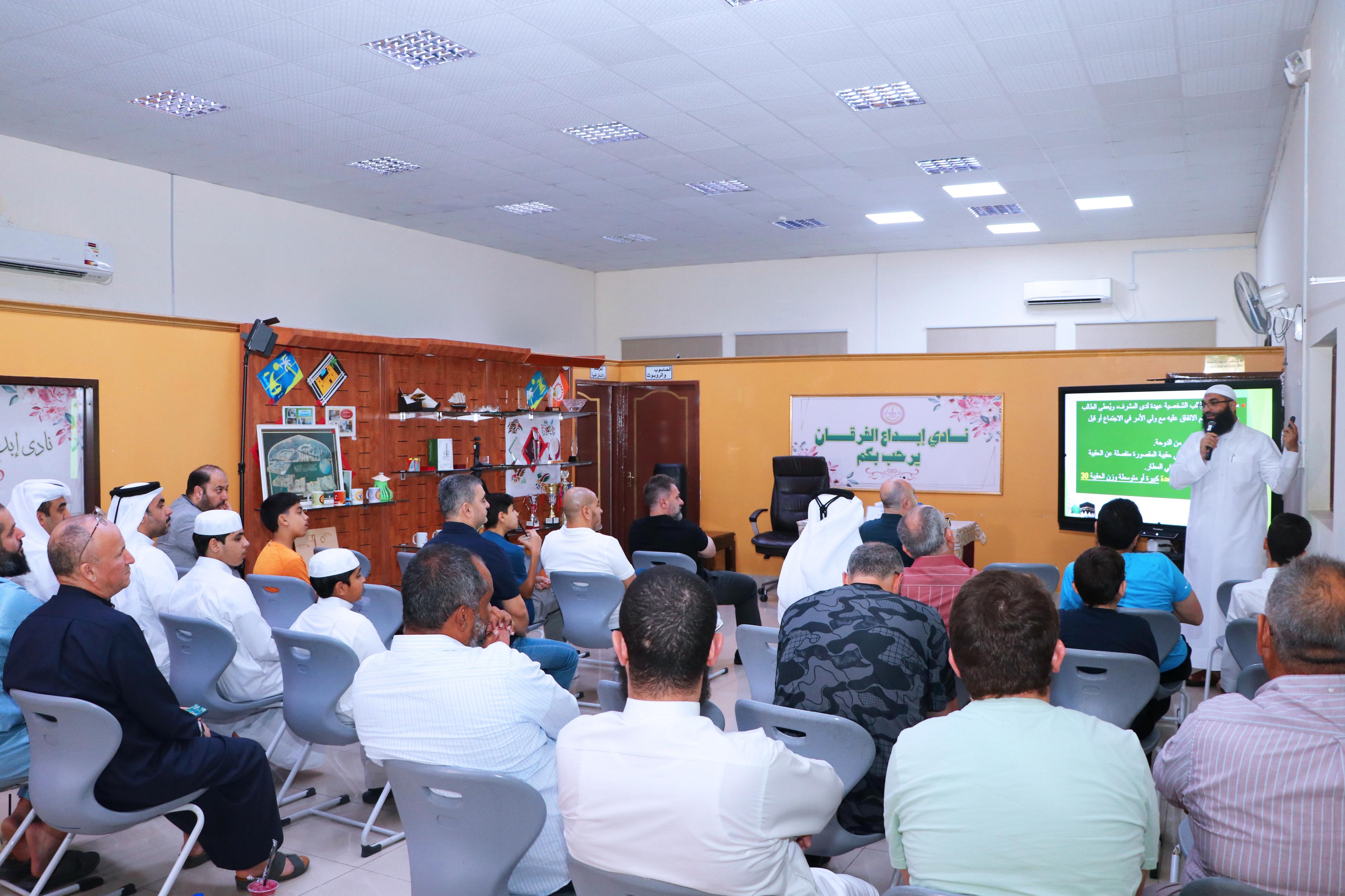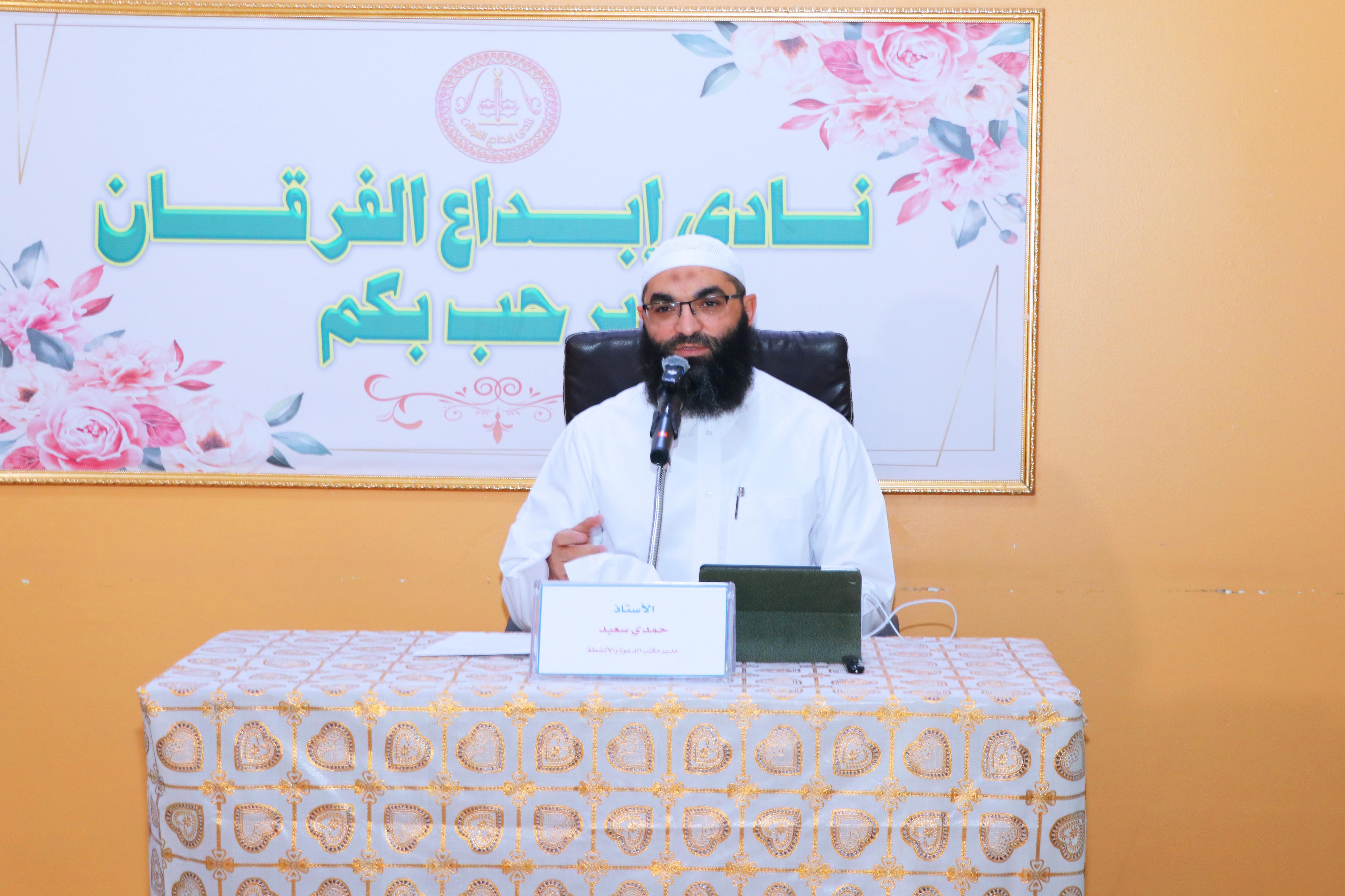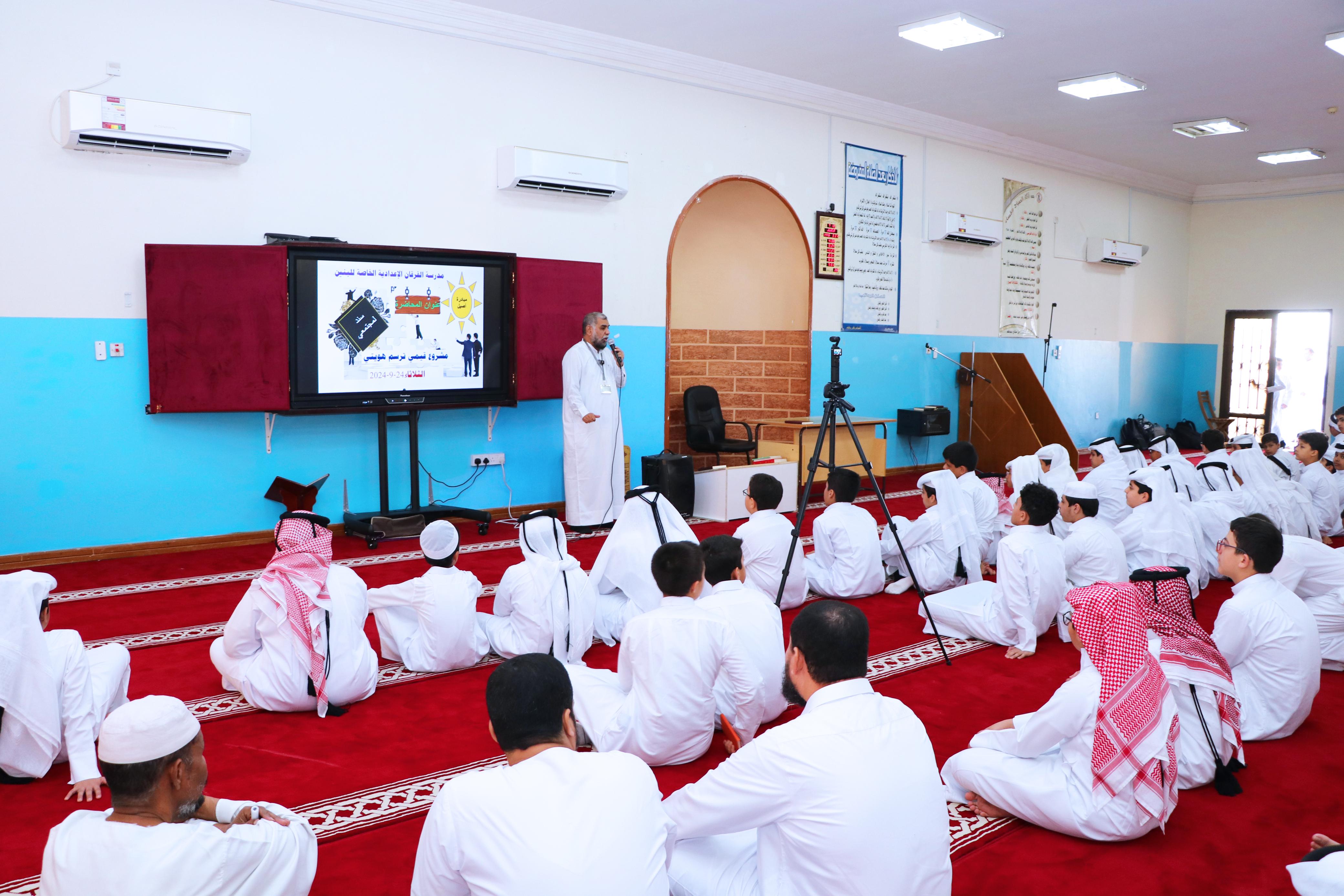 محاضرة الأستاذ حمدي سعيد مدير مكتب الدعوة والأنشطة مع طلاب برنامج تاج الوقار بمدرسة الفرقان الإعدادية
